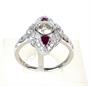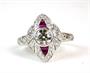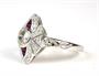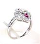 Prsten z bílého zlata ryzosti 585/1000 ve stylu art deco, zdoben brilianty celkové hmotnosti 0,65 ct (z toho středový 0,50 ct) a rubíny 0,10 ct. Velikost prstenu 54, celková hmotnost 3,30 g.