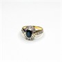 Zlatý prsten osazený safírem a přírodními brilianty oktagonového brusu 0,32 ct,