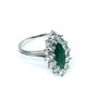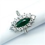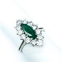 Prsten z bílého zlata je osazený přírodním smaragdem markýzového brusu ( naveta ) o hmotnosti 1,2 Ct