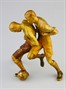 sousoší dvou fotbalistů zápolících o míč, kolorovaný bronz, detailně propracovaná dvoufigura vídeňské firmy F. X. Bergmannn, Rakousko, kolem r. 1920, značeno; rozměry 11 x 10,3 cm; sběratelsky zajímavé