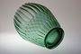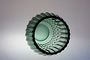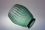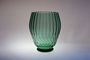 Bohatě broušená váza z topasového skla stojící na patce. Masivní sklo konvexního tvaru zušlechtěné mnohačetným brusem. Zajímavě je broušená spodní část do drobných šupinek. Ve 20-40tých let provedly pravděpodobně sklárny v Železném Brodě. Dobrý stav bez poškození, rozměr - v. 16cm, prům. 13cm