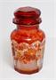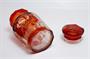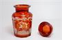 Luxusní celobroušená více než 150 let stará dóza z období Biedermeieru. Čiré sklo zušlechtěné plošným brusem, leštěním a poté dekorované barevnou rubínovou lazurou a zlacením s motivem vinné révy. Zabroušené padnoucí víko, dóza byla určena pravděpodobně na cenné medikamenty, nebo koření. Provedly sklárny v severních Čechách kolem roku 1850. Dobrý stav, rozměr v. 16cm, prům. 9cm