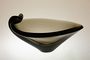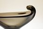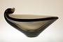 Celobroušený objekt z topasového skla ( bez jediné bublinky, nebo nečistoty ve skle ) od sklářského výtvarníka, brusiče a rytce Antonína DROBNÍKA ( *1925 +2007 ) žák prof. K. Štipla, jeho dílo je zastoupeno v mnoha sbírkách. Prostorová plastika ve tvaru misky zakončenou spirálou ve tvaru valící se vlny. Signováno a datováno 1980 na dolním lemu. Dobrý stav, rozměry - š. 26cm, v. 14cm, h. 14cm
