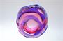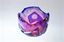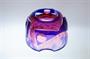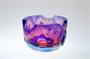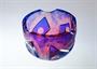 Ateliérové sklo ze 60tých let, celobroušená miska - objekt, který má rubínové jádro přejímané čirou sklovinou a poté ještě kobaltově modrou vrstvou. Celá plocha je hluboce odbroušená a zůstávají dva ornamenty ve tvaru motýlů, kterým dominují dvě a dvě velké čočky. Bohužel nesignovaná práce školeného sklářského výtvarníka, podle provenience nákupu původem z Nového Boru, pravděpodobně v jediném provedení ( snad okruh K. Wünsch? ). Dobrý stav, rozměry - v. 9cm, prům. 12,5cm, hmot. 1,1kg