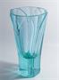 Váza z alexandritové skla, které mění svůj odstín podle spektra osvětlení (viz foto 3 a 4), ve stylu Modernismu a doznívajícího ART - DECO ze 40-50tých let. Broušený hluboký reliéf velkých stylizovaných listů, jejichž špičky lemují hrdlo vázy, masivní dno tzv. Tlustý led. Autorkou návrhu kolem roku 1950 je sklářská výtvarnice - Jiřina Gabrielová PASTRNKOVÁ ( *1908 +1987 ), žákyně Fr. Kysely a v letech 1930-1934 výtvarnice u firmy A. Grindla, v roce 1935 založila se svým manželem úspěšný Umělecký sklářský ateliér v Železném Brodě a v letech 1948-1960 výtvarnice podniku Železnobrodské sklo. Dobrý stav, rozměr v. 21,5cm, prům. 12cm