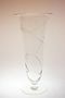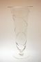 Váza z čirého skla s broušeným geometrickým ornamentem ve stylu ART - DECO stojící na patce a s hrdlem mírně otevřeného tvatu. Váza pochází z Kamenického Šenova a pravděpodobně provedla některá z místních uměleckých krystalerií po roce 1930. Dobrý stav, rozměr - v. 30cm, prům. 14,5cm