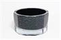Luxusní popelník z masivního čirého fazetově broušeného skla s černým manganovým jádrem - sklo podobné hyalitu, nad kterým je zatavený jemný dekor. Popelník má po obvodu jemně broušené lipny na čtyři cigárka. Černé manganové sklo se proti silnému zdroji světla zabarví do temně fialova. Práce ze severních Čech z první poloviny minulého století. Dobrý stav, rozměr - prům. 13,5cm, v. 7,5cm, hmot. 1,3kg