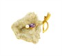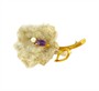Zajímavá brož ve tvaru květu zhotoveného ze surového křemene, uprostřed jsou zasazeny drobný ametyst a perlička. Žluté zlato ryzosti 585/1000. Rozměry brože 4,5 x 3 cm, celková hmotnost 11,53 g.