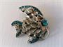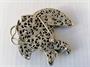 Nádherná veliká brož, zhotovena z obecného kovu, osazena skleněnými kameny, designově a i z hlediska zhotovení na vyšší úrovni . Šířka brože 5 cm a na výšku 5,5 cm. Ve výborně zachovalém stavu, u háčku chybí mlýnek - zajišťovací kolečko.