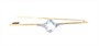 Elegantní vintage brož ze žlutého zlata 585, zdobená centrálně zasazeným oválným fasetovaným akvamarínem, uchyceným čtyřmi jemnými krapnami. Rám je jemně prolamovaný a po stranách doplněný dvojicí drobných diamantových růží různé velikosti. Brož má decentní tvar s mírným rozšířením směrem ke středu a nese jen nepatrné známky nošení.