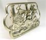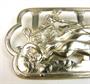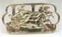 Stříbrná brož s plastickým výjevem antického čtyřspřeží. Stříbro ryzosti 800/1000 (punc Tatry), rozměr 7 x 4 cm, hmotnost 10,08 g. 30. - 40. léta 20. století.