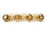Brož s citríny. Slitina zlata 375/1000, stříbra, platiny a obecného kovu. Přírodní citríny 8 ct. Váha brože: 4,25 ct. Délka brože: 5 cm.