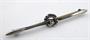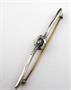 Horní ( čelní ) část brože z bílého kovu. Úzkého tvaru, zdobená fazetami a svislými linkami. Centrální reliéfní podkova, uprostřed s broušeným skleněným kamínkem. Klenutý úchyt, jehla ze žlutého kovu. Celková hmotnost 5,85 gramů. Střední Evropa 1890 - 1930. Délka 7,5 cm.
