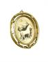 Oválná brož (přívěsek) s mikrořezbou v kosti - motiv koně. Zlacený obecný kov, nádherná práce. Šířka 4,7 cm, výška 5,9 cm. hmotnost 29,14 g. ---