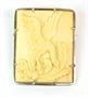 Brož s řezbou v kosti zasazená do stříbrné obroučky ryzosti 835/1000. Značeno platným puncem.