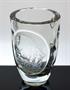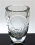 Luxusní celoplošně broušená a leštěná váza s dekorem mělkých čoček na ploše a vystouplým medailonem na kterém je hluboce rytý portrét mladé dívky a květiny. Jedná se pravděpodobně o práci rytce, sklářského výtvarníka a pedagoga - Božetěch MEDEK ( *1909 +2005 ), podle návrhu prof. Aloise METELÁKA ( *1897 +1980 ). Provedení sklárny v Železném Brodě, nesériový sklářský objekt z první poloviny minulého století. Dobrý stav, rozměr v. 17cm, prům. 11,5cm