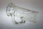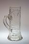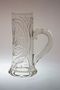 Asi 150 let starý půllitr z čirého skla plošně celobroušený pocházející z období Biedermeieru. Bohatě broušený ornament na celé ploše s kulatým medailonem uprostřed a vespod jedenáct fazet. Starý gravírovaný cejch se šípem a na masivním uchu broušená příprava na cínové víko. Mistrovská práce sklářů z poloviny minulého století. Dobrý stav, rozměr v. 20cm, š. 15cm
