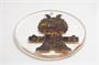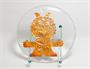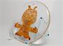 Ateliérové sklo - skleněná plastika z čirého skla se zatavenou měděnou fólií s reliéfem, pohádkovým motivem "ČERTÍK" k zavěšení na stěnu. Práce sklářského výtvarníka Pavel PÁNEK (*1945 +2008), dílo ze 70-80tých vzniklo ve Světlé nad Sázavou, kde autor působil jako pedagog. Podobný námět také realizoval v lisovaném skle. Dobrý stav, rozměr prům. 20 x 1,5cm