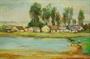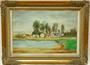 Krajinářský motiv s příjemnou atmosférou letního dne, vesnická stavení s rybníčkem a figurální stafáží husopasky. Olejomalba v původním blondelovém rámu od autora - Josef ( Jožka ) FLORIÁN restaurátor a malíř převážně krajinář, žil a tvořil v Teplicích, ale podnikal také studijní cesty po jižní Evropě. Paspartováno pod sklem, sig. a dat. p.d. na zadní straně autorův štítek. Na rámu drobný oťuk, jinak dobrý stav, celkový rozměr - 61 x 45cm, rozměr díla - 50 x 35cm