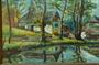 119584Chalupy na břehu rybníka, Karel NĚMEC 1938 olejomalba