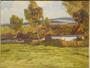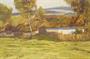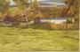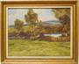 Expresionisticky pojatá krajinomalba z první poloviny minulého století, venkovská stavení v podhorské krajině. Téměř až monochromatický obraz letního dne, jak ho v plenéru zachytil malíř a pedagog Jaroslav HOLEČEK ( *1902 +1953 ), převážně ryzí krajinář. Dílo středního formátu, olej na kartonu, signováno p.d. Obraz je adjustován v původním stylovém nepatrně poškozeném rámu. Dobrý stav, celkový rozměr 78 x 63cm, rozměr díla 63 x 48cm