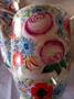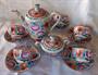 Čajový servis je bohatě ručně malovaný. Na bílém podkladu jsou barevné květy typické pro Chodsko. Jsou to luční květy, vlčí máky, kopretiny, pomněnky, chrpy a stylizované růže. Servis obsahuje 6 šálků s podšálky, konvici a cukřenku. Vše je nepoškozené. Výška konvice včetně víčka je 20 cm, výška cukřenky je 10 cm, výška šálku je 8 cm, průměr šálku měřeno bez ouška je 9,cm, průměr podšálku je 15 cm. Včechny součásti servicu jsou na dně značené razítkem Míča Klenčí. Jde o ručního malíře chodské keramiky a porcelánu. František Míča působil v Klenčí u Domažlic od roku 1926 do roku 1945.