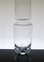 Ateliérové sklo - větší váza z čirého skla s úzkým hrdlem, ve spodní části broušená a dochovanou nálepkou EXBOR. Váza má gravírované věnování za odvedenou práci v oboru 1945-1970 a značku PTP - Průmysl trvanlivého pečiva (dříve Kaspar Fiedor, po válce PTP a později Deli, Opavia a dnes Mondelez. Autorem je sklářský výtvarník a pedagog Karel WÜNSCH ( *1932 +2020 ), provedení závod Exbor Nový Bor. Dobrý stav, rozměr - v. 30cm, prům. 9cm