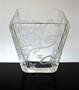 Velmi vzácně vídaná váza z čirého, masivního, fazetově broušeného skla, pochází z kolekce, kterou v roce 1931 pro Krásnou jizbu navrhla sklářská výtvarnice a pedagožka Ludvika SMRČKOVÁ ( *1903 +1991 ). Tato kolekce váz bez dekoru získala v roce 1937 zlatou medaili Grand Prix na Mezinárodní výstavě užitého umění v Paříži. Provedla sklárna Rückl Nižbor. Kolem roku 1943 tento soubor skla zušlechťoval hlubokým pískováním s různými motivy designér, scénograf a výtvarník Bohumil NĚMEC ( *1912 +1985 ). Dobrý stav, rozměr - v. 19,5 x 18 x 18cm, hmot. 3,6kg!