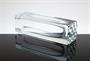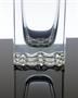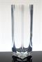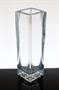 Masivní váza jednoduchého tvaru z čirého skla, které je zušlechtěné celoplošným broušením a leštěním, vespod s geometrickým reliéfem. Autorem návrhu pro sklárnu Moser Karlovy Vary, po roce 1970 je sklářský výtvarník - Pavel HLAVA (*1924 +2003). Dobrý stav, rozměr v. 21 x 6,5 x 6,5cm