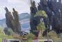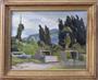 Olej na kartonu 40 x 53 cm. Signováno vlevo dole s datací 1946. Pohled do krajiny se stromy a pohořím. V přední části položené ohradníky. Claire Szilard ( 1920 - 2017 ) maďarská malířka židovského původu. Světlý rám 55 x 67 cm. Vzadu na kartonu razítko : P. Loretti. Švýcarsko kolem roku 1946.