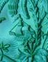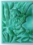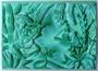 skleněná malachytová reliéfní destička, rozměry 16,5 x 11,5 cm, na rohu mikro odštěpek
