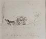 Drobná perokresba, rozměr 10x12 cm, celkově 25x33 cm. Signováno, datováno 9.6.1962. Původní adjustace, ušpiněná pasparta.