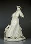 humorná soška dámy napadené psíkem, model Franz Anton Bustelli (kolem roku 1760), porcelánka Nymphenburg, provedení kolem r. 1840, značeno; drobné poškození mašliček, výška 21 cm; sběratelsky zajímavé
