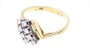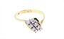 Stylový dámský prsten ze žlutého zlata 585 s výraznou hlavou ve tvaru kosočtverce, šikmo osazenou pásy drobných briliantů o celkové hmotnosti přibližně 0,24 ct. Prsten působí elegantně a nadčasově, vhodný pro každodenní nošení i slavnostní příležitosti.