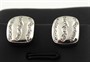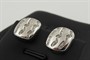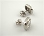 Osmnáctikarátové bílé zlato, přírodní diamanty. Ryzost Au 750/1000, celková hmotnost 3,05 g. Autorský šperk od italské šperkařské firmy Gianni Caritá, Marcianise, založené roku 1834 v Neapoli a později přemístěné do města Marcianise v italském kraji Caserta, současný název klenotnictví je Gianni Caritá Gioielli. Designové náušnice z osmnáctikarátového bílého zlata evokující tvar manžetových knoflíčků zdobených vlnkami z 36 přírodních diamantů moderního briliantového brusu o celkové váze 0,25 ct, barva G, čistota Si. Zapínání na puzetu. Ve výborném stavu. Značeno: mistrovská značka klenotníka, ryzost 750. Itálie, Caserta, Marcianise, přelom století. Rozměr: 13 mm x 11 mm.
