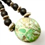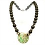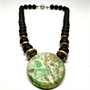 Originální náhrdelník s variscitem zdobený stříbrnými komponenty. Sterlingové stříbro (925/1000), celková váha 115,2 g. Délka 45 cm. Velmi dobrý stav.