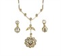 Starožitná secesní souprava, náhrdelník a náušnice osazené přírodními diamanty routového brusu, přelom 19./20. století, počátek secese, náhrdelník i náušnice jsou kombinací zlata a stříbra, Au 750,740/1000 a Ag 925/1000 o celkové hmotnosti 8,4 g, délka náhrdelníku 42 cm, délka náušnic 1,3 cm.