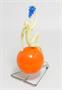 Velice líbivá skleněná figurka z výrazně barevného Tango skla, prvorepubliková práce z Železného Brodu. Sklo tavené nad plamenem - nahá dívka sedící na míči s hroznem vína, jako alegorie bohaté sklizně, či vinobraní. V detailech velmi jemná práce podle návrhu sklářského výtvarníka a pedagoga prof. Jaroslava BRYCHTY (*1895 +1971). Dobrý stav, rozměr - v. 14 x 9 x 6cm