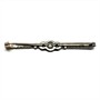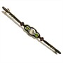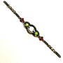 Velmi půvabná, něžná, stříbrná brož. Šperk zhotovený ze stříbra ryzosti 800/1000 byl vyroben počátkem 20.století. Zdobí jej tmavě růžové a zelené kamínky, třpytivé markazity a perleť. Váha 4,99 g. Délka cca 7 cm. Výborný stav.