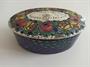 Dóza oválná s víkem, porcelán, barevné květy, zn. Ernst Wahliss, Porzellanfabrik, Vienna, 1899-1910, restaurované víko viz foto, 7 x 18,5 x 12,5 cm