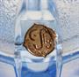 Válcovitá dóza s víkem, se svislými kubizujícími žebry. Modré lisované sklo (Pressglas). Výrobce Heřmanova Huť (Hermannshütte), C. Stölzle’s Söhne, Aktiengesellschaft für Glasfabrikation, hlavní závod Vídeň, pobočný závod Heřmanova Huť. Zápis firmy pro pobočný závod Heřmanova Huť 11. 5. 1908. Značeno zlatou nálepkou s písmeny HH, C.St.S., CZECHOSLOVAKIA. Výška 21 cm. Ve dně slabá rýha. Kol 1930.