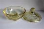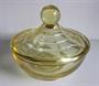 Dóza polokulovitá, s víkem. Sklo žluté barvy (Eldor?), broušené. Výrobce Meyers Neffe; Meyrův synovec, sklárna Adolfov, zápis firmy 22. 3. 1899. Nástupce Karlovarské továrny na křišťálové sklo akciová společnost Ludvík Moser a synové a Meyra synovec, sklárny, hlavní závod Dvory, zápis firmy 20. 1. 1931. Výška 7 cm, průměr 14,5 cm, výška s víkem 15 cm. Rýhy na dně. 1920-1930. Značenou nálepkou a leptanou značkou.