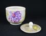 neobvyklá porcelánová art deco dóza s víkem, zdobená efektním ručně malovaným stylizovaným květinovým dekorem a ”nekonečnou spirálou”, vyrobila Porzellanfabrik Rosenthal, kolem roku 1940, výška s víkem 14 cm, průměr 12,5 cm; sběratelsky zajímavé