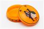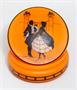 Půvabná dózička z výrazně barevného matovaného Tango skla, které ke zušlechtěné malbou vypalovaným smaltem tzv. technikou švarclot (Schwarzlot) s ručně malovaným motivem rokokové galantní scény. Líbivá práce sklářů z počátku minulého století. Dobrý stav, rozměr - v. 6cm, prům. 10cm