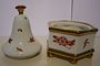 malbou kvítků.Porcelán bílý,malovaný,glazovaný,zlacený.Neznačeno.
