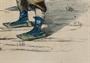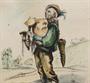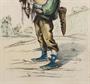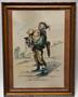 Celkem neobvyklý motiv hudebníka v dobovém kroji s lidovým nástrojem, pravděpodobně z Chodska. Práce na papíře, kombinovaná technika od malíře a ilustrátora - František Sylva TOMAN ( *1886 +1942 ), studium tkalcovské školy, působil a pracoval na Žižkově. Dílo v původním rámu, paspartováno pod sklem, sign. p.d. Dobrý stav, celkový rozměr 50 x 38cm, rozměr díla 41 x 27cm