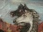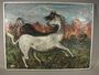 Dva koně, olej na desce doplněná skleněnou drtí, lištováno. Signováno vpravo dole nečitelně, 60. léta 20. století. Rozměry 57 x 76 cm.