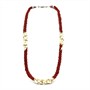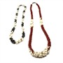 Dva půvabné, velmi efektní náhrdelníky s bílými říčními perlami. První náhrdelník byl spleten ze třech řad elegantních, tmavých hematitů a kontrastních, bílých, říčních perel. Délka 45 cm. Karabina ze zlaceného stříbra sterlingové ryzosti (925/1000). Druhý náhrdelník tvoří stovky drobných, sytě červených korálů zdobených říčními perlami. Délka 46,5 cm. Oba šperky jsou ve velmi dobrém stavu.