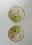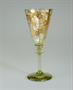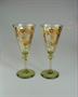 secesní skleničky na likér, resp. dezertní víno, světle zelené sklo, secesní květinový dekor malovaný smaltem, severní Čechy, kolem r. 1900; výška 15 cm