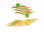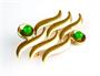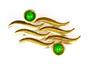 2) Brož je tvořena šesti vlnovkami zdobena dvěma zelenými kameny. Celková hmotnost brože: 4,75 g. Rozměry: 4,4 x 2,4 cm.